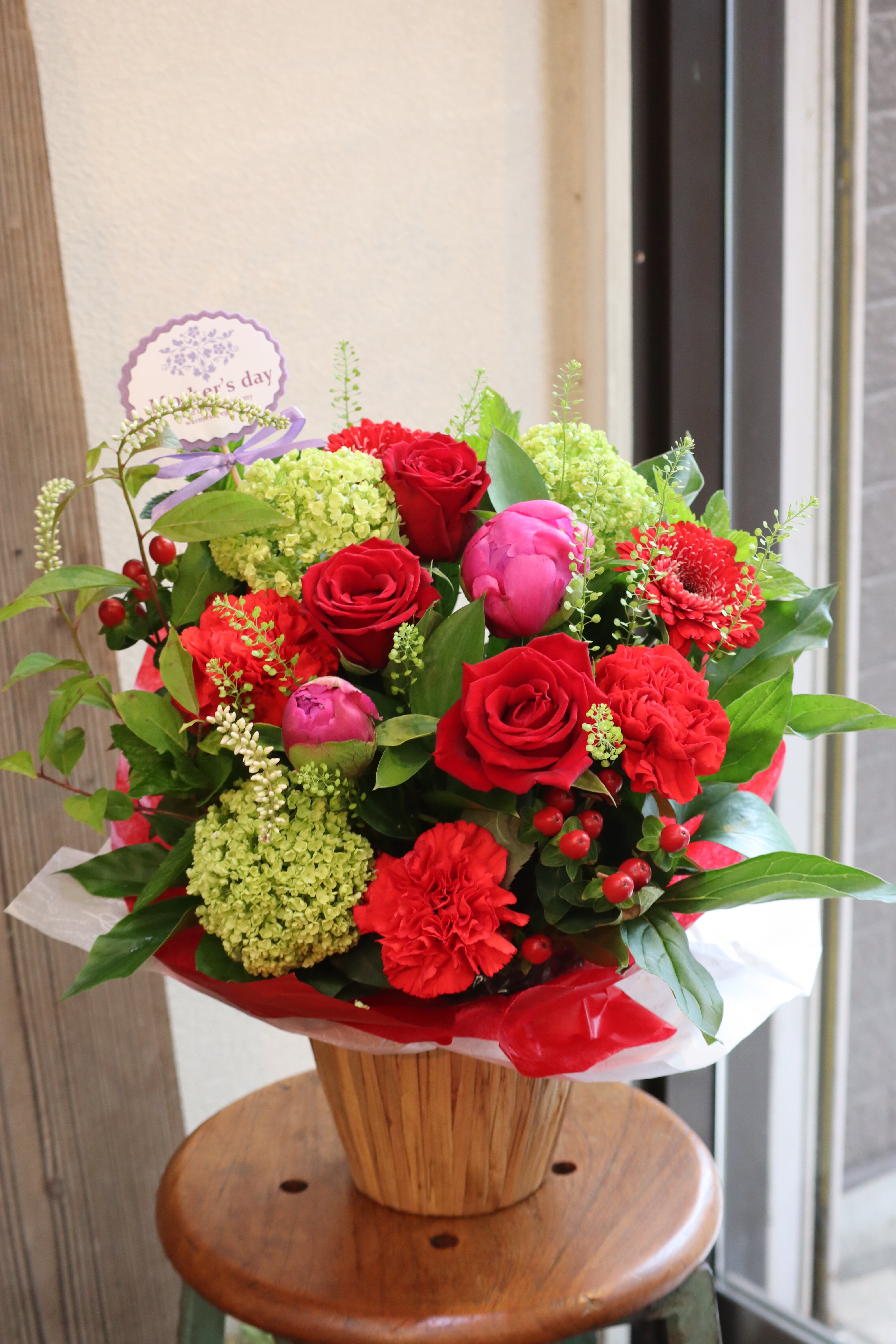 [A09]母の日:アレンジメント(Red系)-M